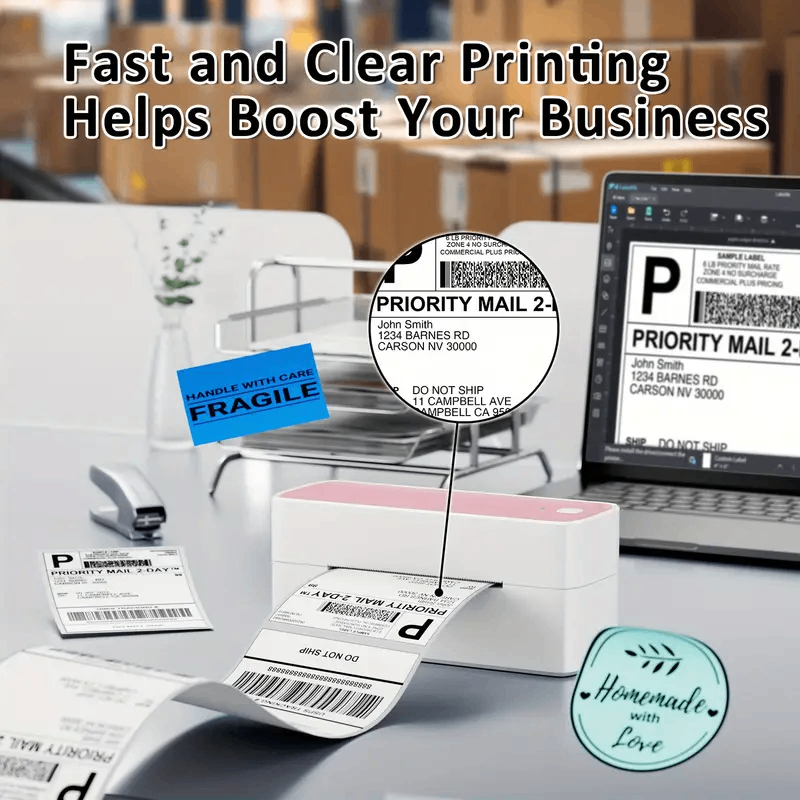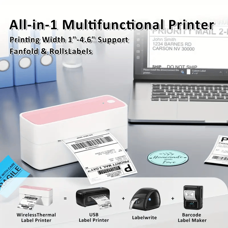 This label printer is compatible with various platforms and can handle labels ranging from 1 to 4.6 inches in width, or 2.54cm to 11.68cm. It is commonly used for printing labels from popular e-commerce and shipping services. With a single click, you can print text, images, forms, Christmas gifts, thank you cards, and access hundreds of icons along with numerous pre-designed templates for both business and personal use. Enhance your productivity and consider it as a gift for your loved ones.