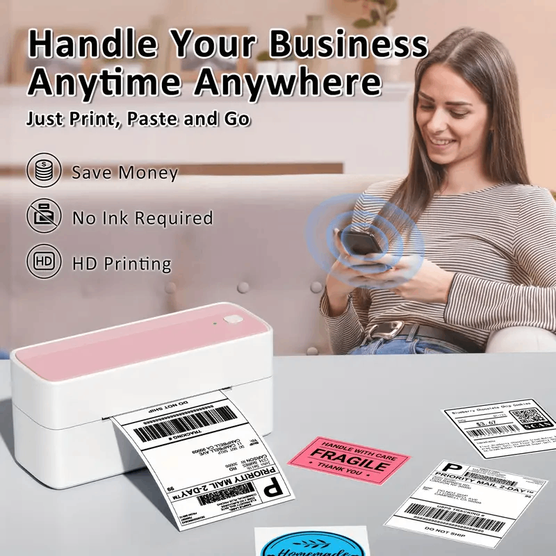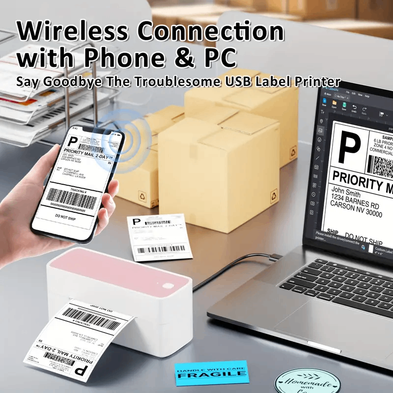 Discover the ease of printing without wires using a shipping label printer. Just link your device wirelessly and install the "labelife" application. With user-friendly features, you can easily print various documents, images, and more, making your everyday tasks simpler. Keep in mind that a direct wireless connection isn't available, and the app is necessary for printing on any device.