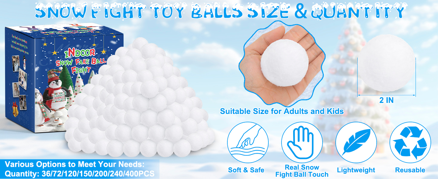 🎄2025 Christmas Sales🎅120 Pack Fake Snow Balls, Soft Snow Ball Fight Set, Plush Snow Balls for Kids Indoor, White Artificial Snow Balls Toys for Parent-child Winter Indoor Outdoor Christmas Party Games Xmas Present Decor