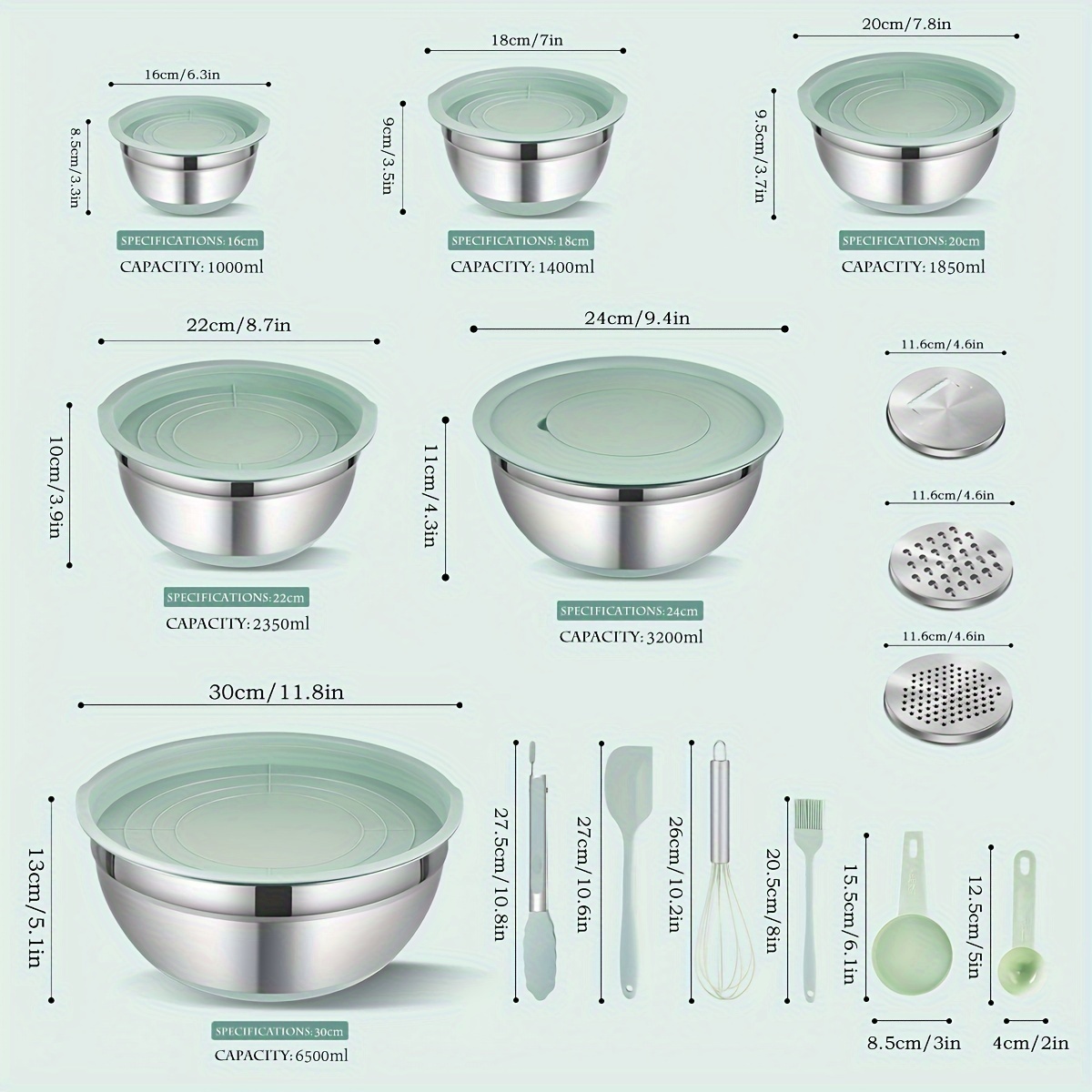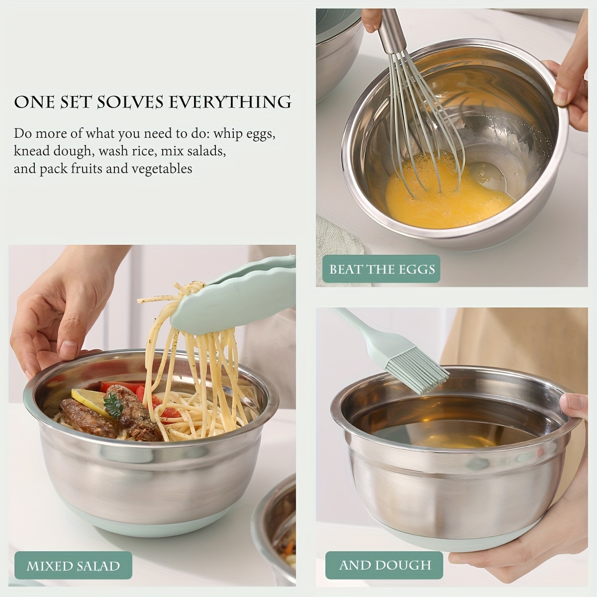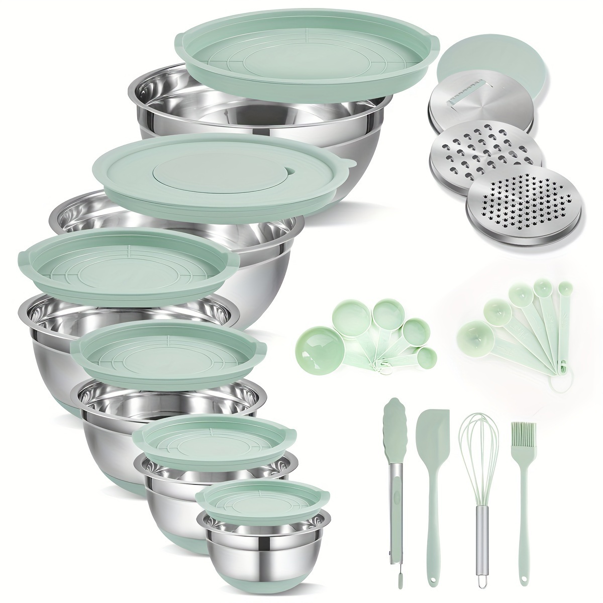 🎄2025 Christmas Sales🎅🔥(Buy 1 Get 1 Free)29-piece stainless steel non-slip silicone bottom mixing bowl baking set with sealing lid