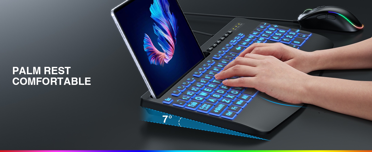 Wired Keyboard Mouse Combo - Large Print Backlit, Ergonomic Wrist Rest, 7 DPI RGB for PC/Windows - Ideal for Seniors, Students, Office and Home SABLUTE
