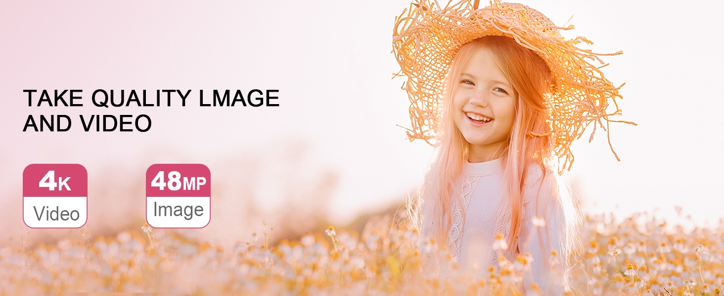 Digital Camera, UHD 4K 48MP with 64GB SD Card and 16x Digital Zoom with Anti-Shake, Compact and Portable