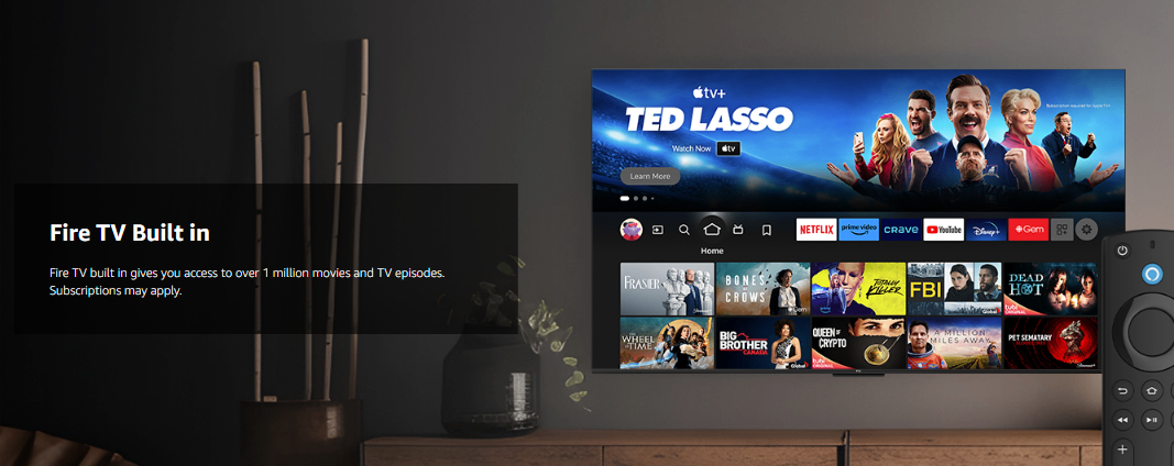 Fire TV Experience – All your entertainment in one place. Fire TV gives you quick access to live TV, video games, music, and lets you stream over 1 million movies and TV episodes. Subscriptions may apply.