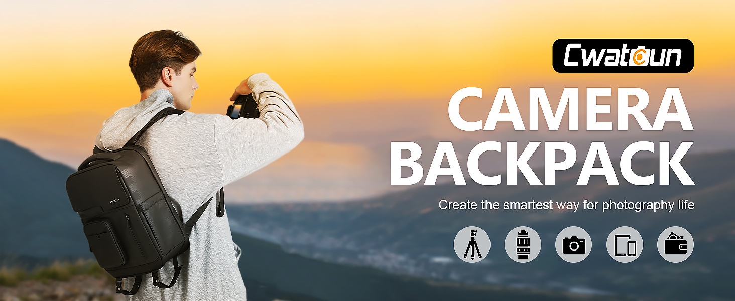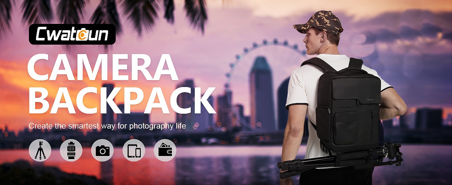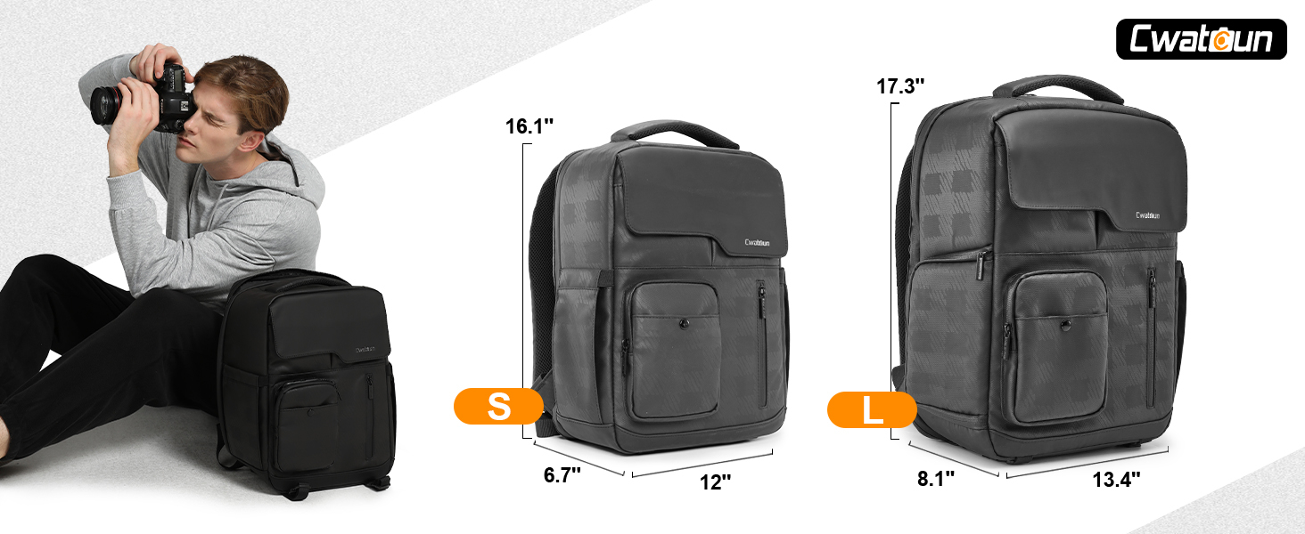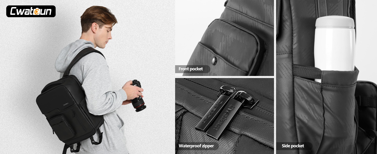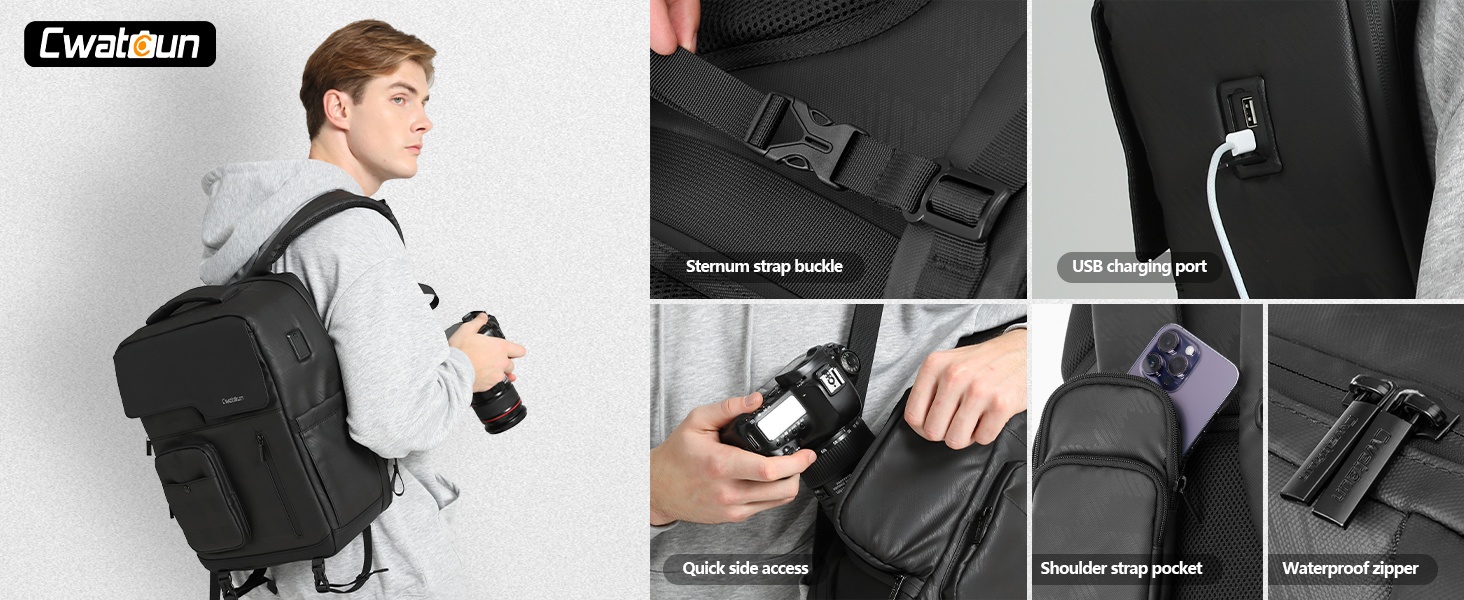 ✅【Keep Camera Safe】Cwatcun photography backpack is constructed with durable polyurethane material and waterproof zipper to keep your gear fully protected unpredictable weather conditions. The inside 18mm thickened EPE foam padded layer can provide good buffer and protection to your internal stuff against shock and drops. All suture parts of the SLR bag have taken upgrade reinforcement technology. Lockable zippers and a high-quality metal hook can achieve the purpose of anti-theft.