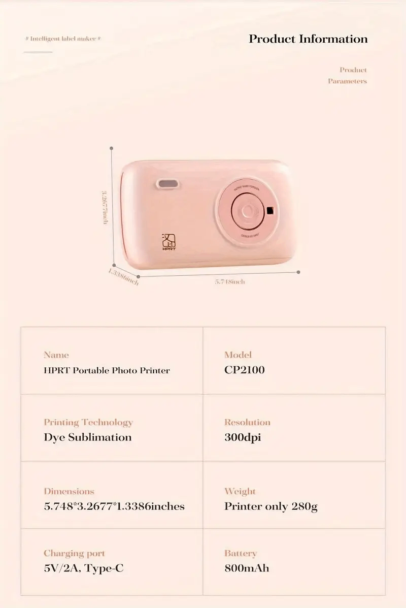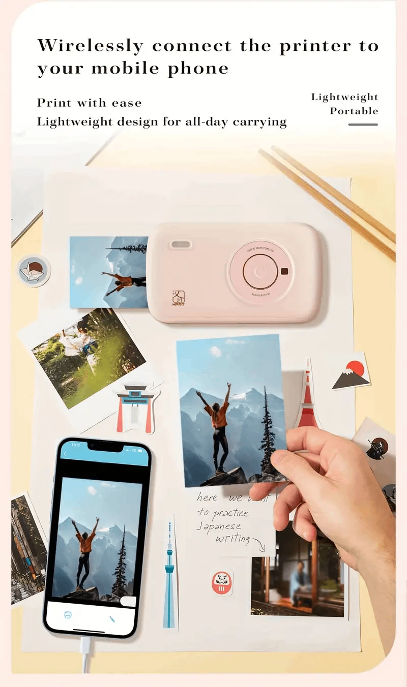 Thermal Sublimation Photo Printer, 2x3 Micro Portable Colour Photo Printer with 10 Sheets Of Adhesive Paper, Wireless Mobile Phone Connection, Compact Photo Printer for All Kinds Of Smartphones, Print Memories At Anytime for Parties, Travels And Trips